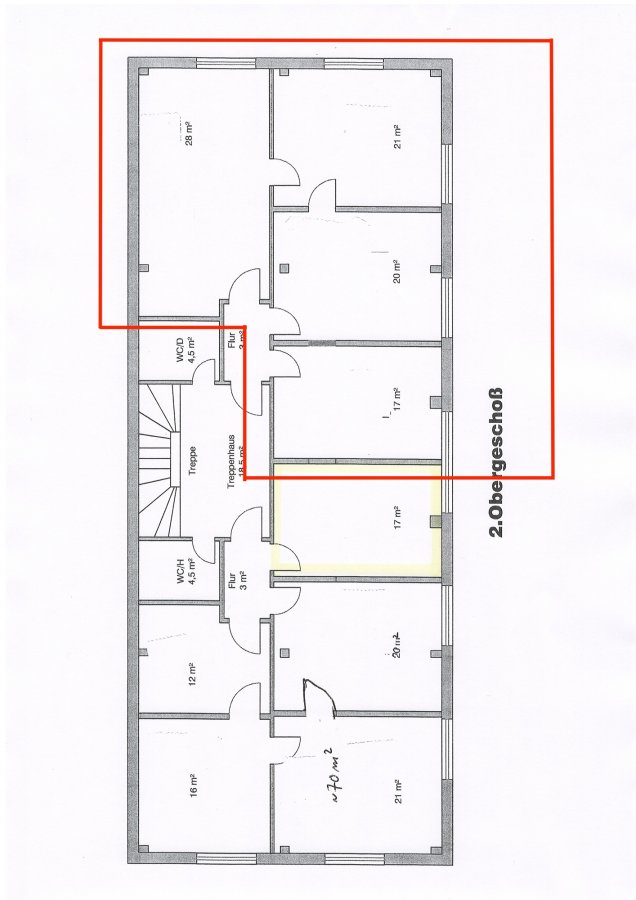 Sanitär: ein Sanitärblock pro Etage, getrennte Toiletten