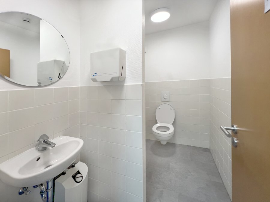 Sanitär: Dusche, Umkleideraum, WC privatisiert, ein Sanitärblock pro Etage, getrennte Toiletten