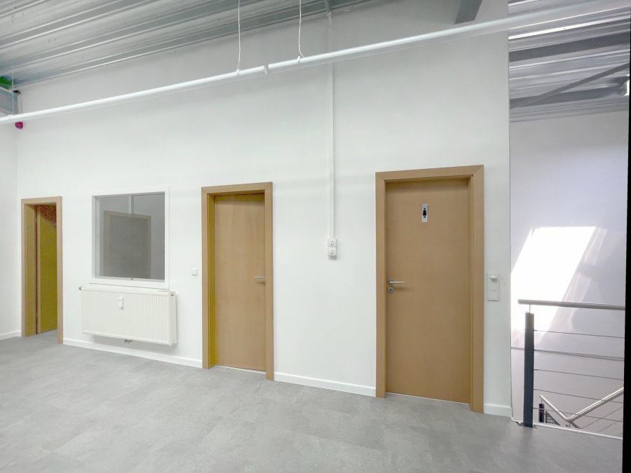 Die Halle ist ausgestattet mit: Abwasseranschluss, Büro, Heizung, Oberlicht, Stromanschluss, Wasseranschluss