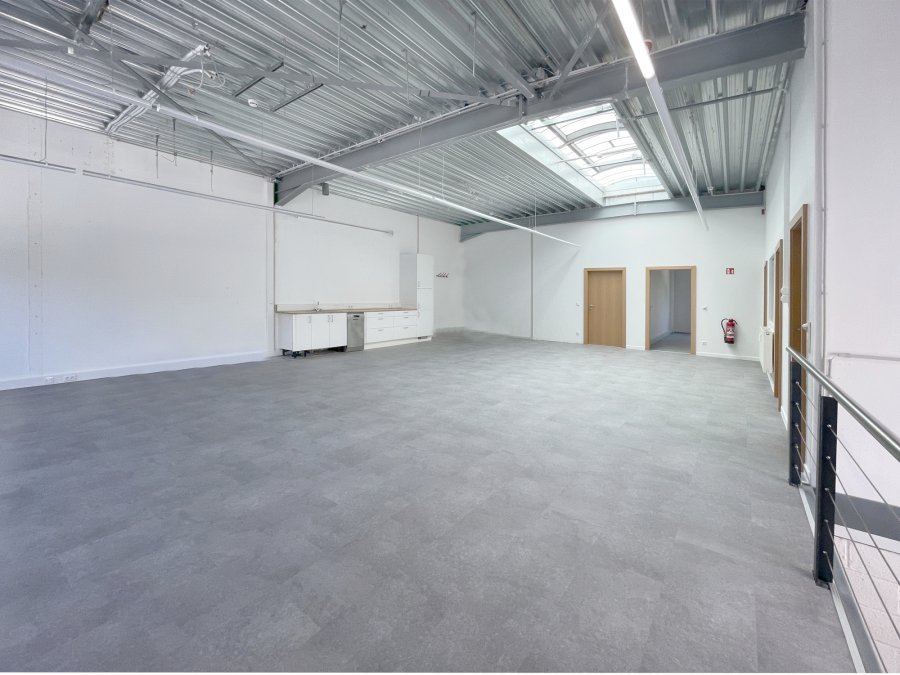 L'entrepôt est équipé avec : raccordement des eaux usées, bureau, chauffage, lanterneau, raccordement électrique, raccordement de l'eau